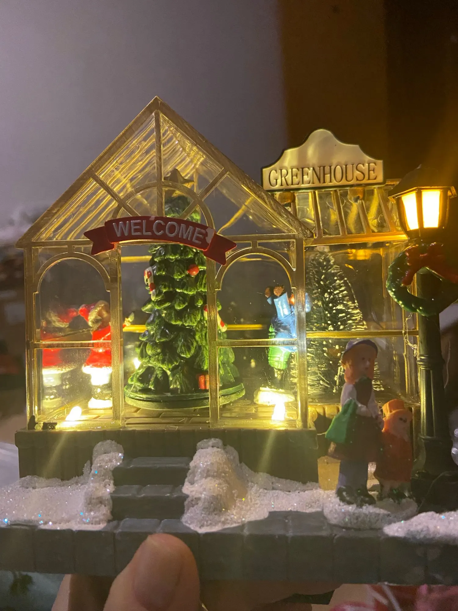 Step into a winter wonderland with this enchanting Musical Greenhouse Ornament, where twinkling LED lights dance alongside rotating tree figurines and cheerful melodies.