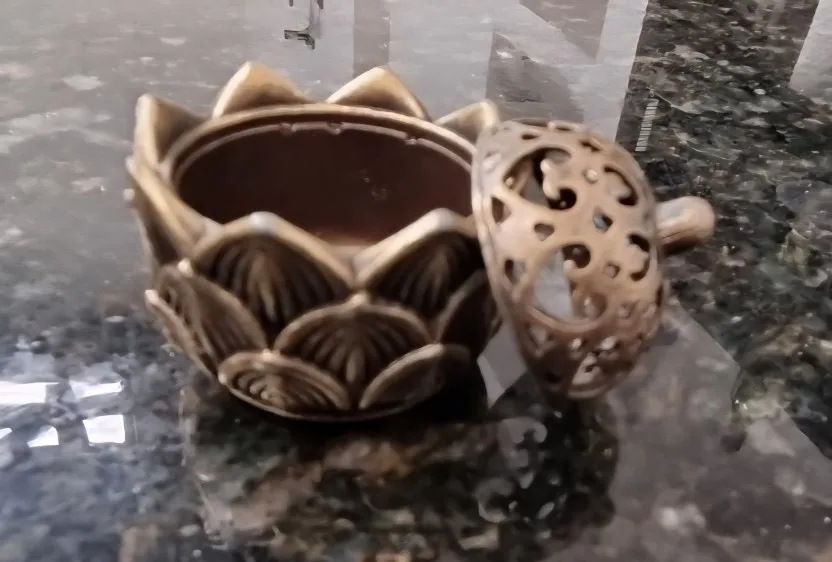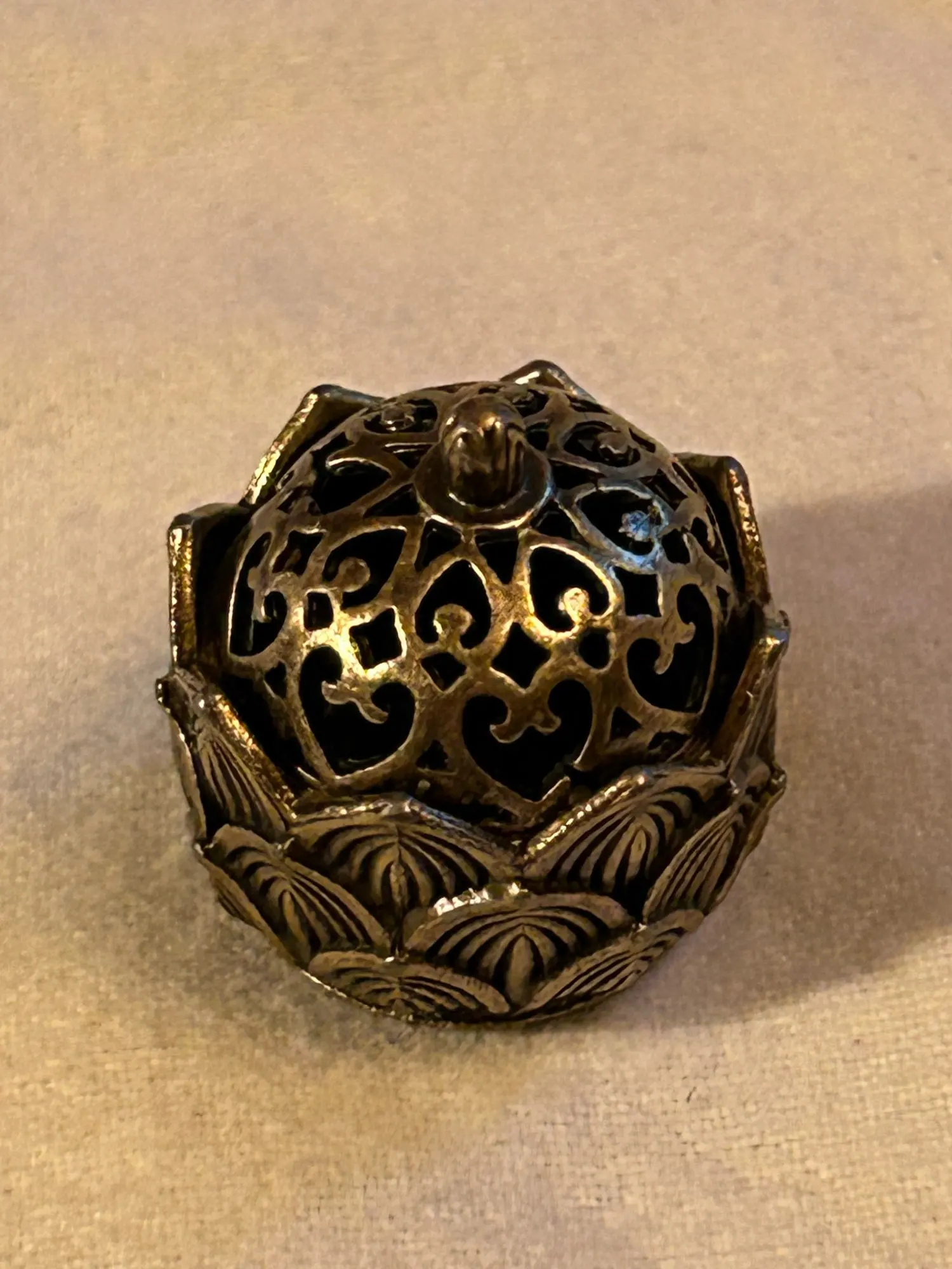 This Stainless Steel Hollow Lotus Incense Burner offers a blend of refined artistry and practical design.