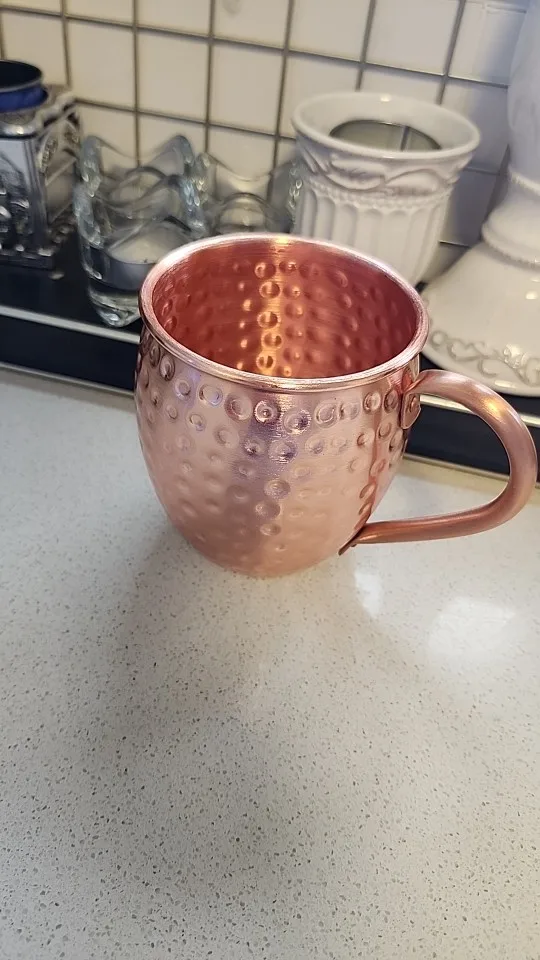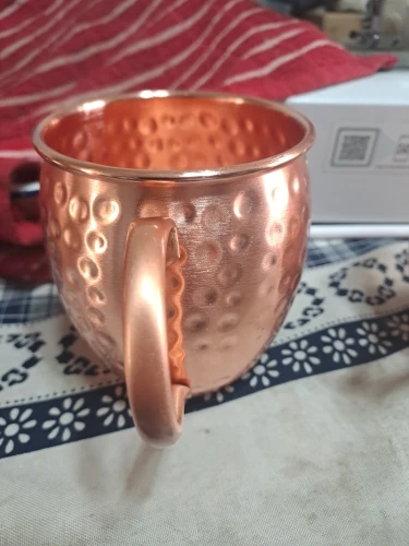 The hand-hammered surface offers an elegant vintage aesthetic and enhances grip. An ergonomically designed copper handle is securely riveted for durability and comfort. These versatile mugs are perfect for cocktails, mixed beverages, iced coffee, beer, and also serve as a refined gift choice.
